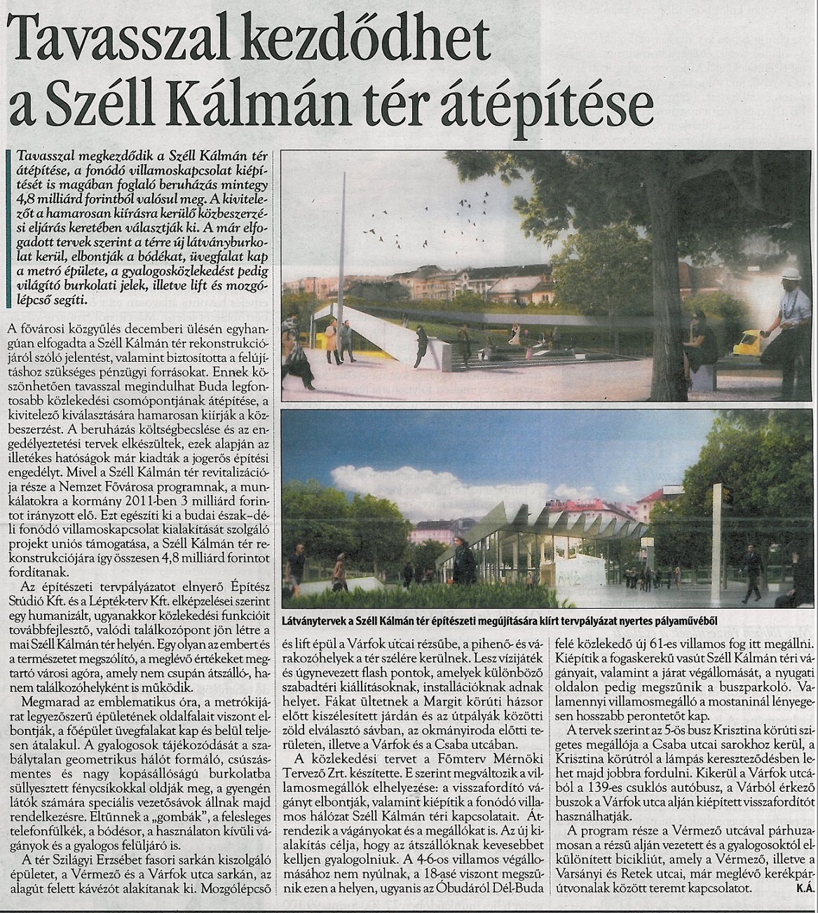 Az Új Széchenyi Terv Közlekedés Operatív Programból finanszírozott „Budai Vár és környéke közlekedés fejlesztése" (KÖZOP-5.5.0-09-11-2011-0027) projekt megvalósítása keretében január közepén a helyére emelték a Várbazárból a Vízhordó lépcsővel párhuzamosan a Várba közlekedő, hat emelet magas szabadtéri mozgólépcső szerkezetét.
